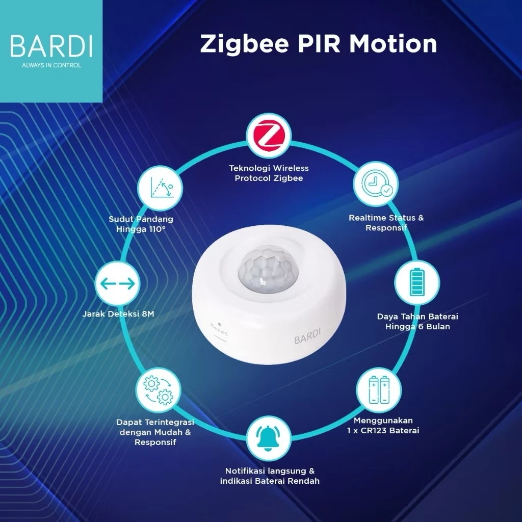 Penggunaan BARDI Zigbee PIR Motion Sensor dan BARDI Zigbee Door Sensor WAJIB memiliki BARDI Zigbee Gateway terlebih dahulu baru keduanya bisa digunakan. TANPA GATEWAY produk tidak bisa di gunakan.