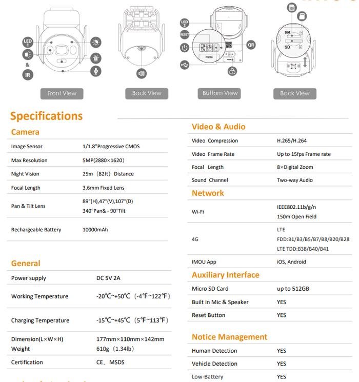 Camera Dimensions: 177*110*142 mm( 6.96*4.33*5.59 inch)
